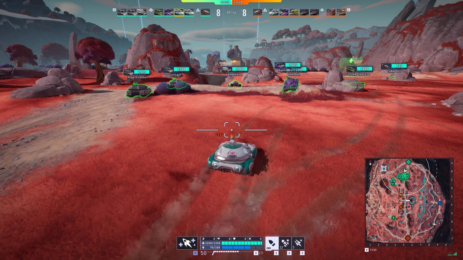 Each vehicle features a unique power that impacts Tyr’s moment-to-moment play on the battlefield. A tank may have the ability to blink several vehicle lengths forward or back, send out a sonar pulse to spot enemies, or overcharge its engine to ram directly into an opponent and deal massive damage.